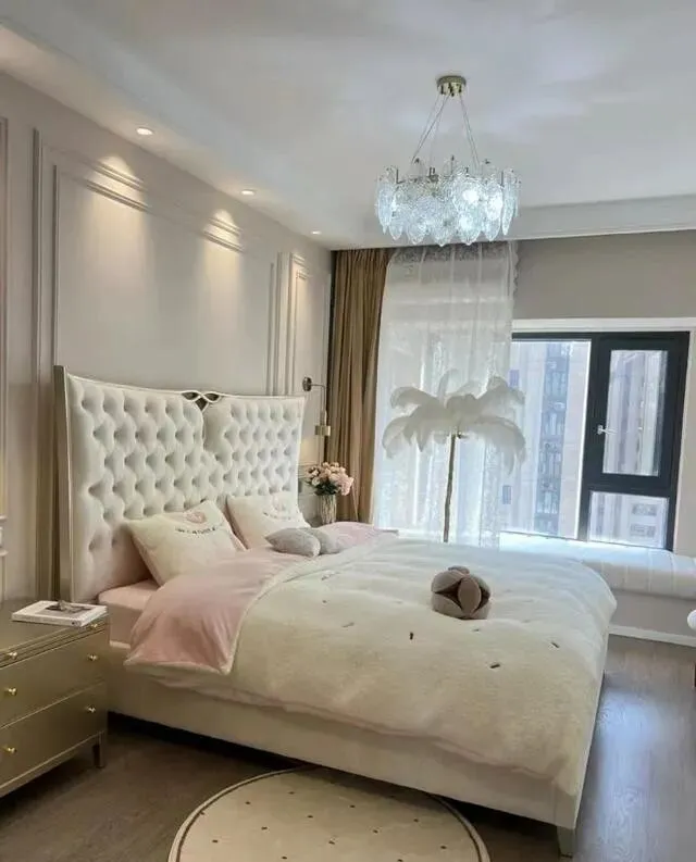 四件套选了粉粉嫩嫩的颜色 , 配上床上那团绒绒的毯子 , 温馨感直接拉满 , 躺上去就不想起来那种...
