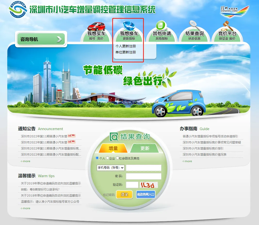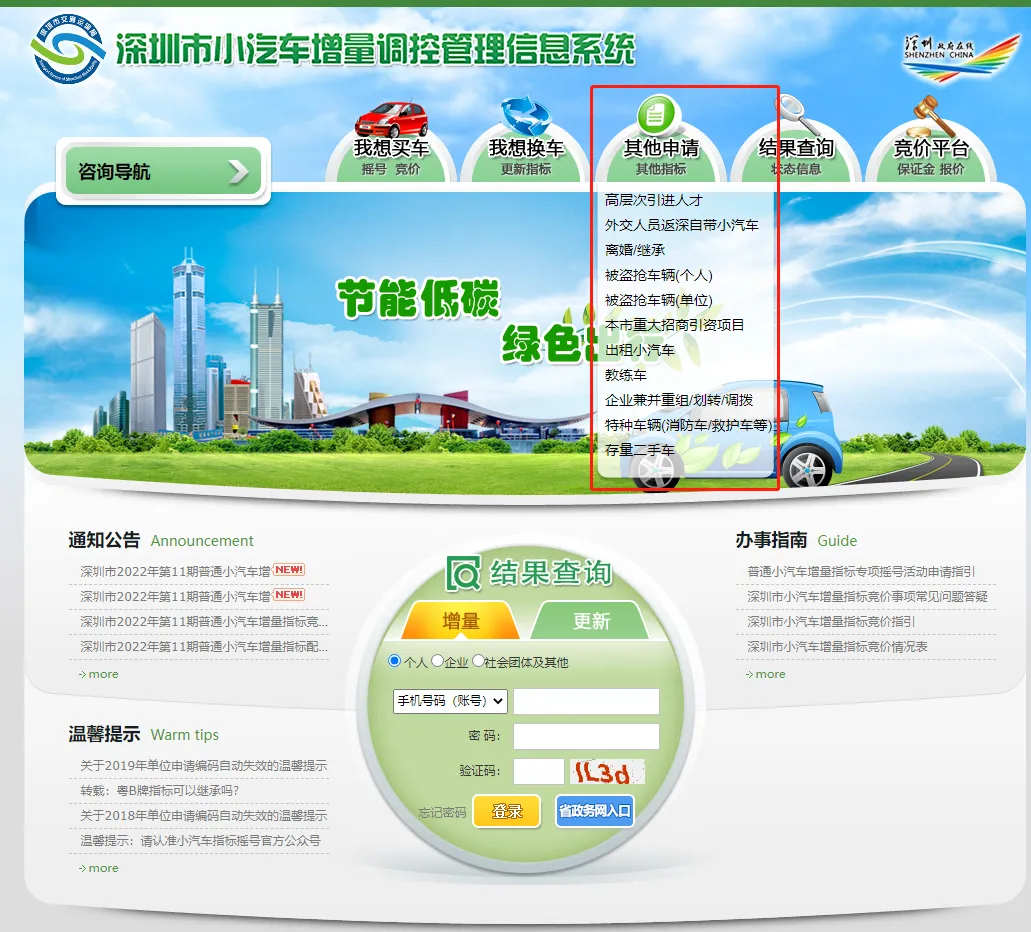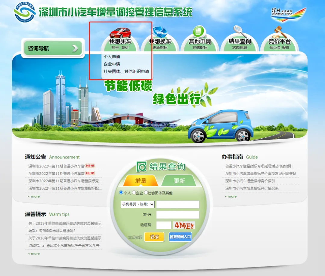 登录深圳市小汽车增量调控管理信息系统。