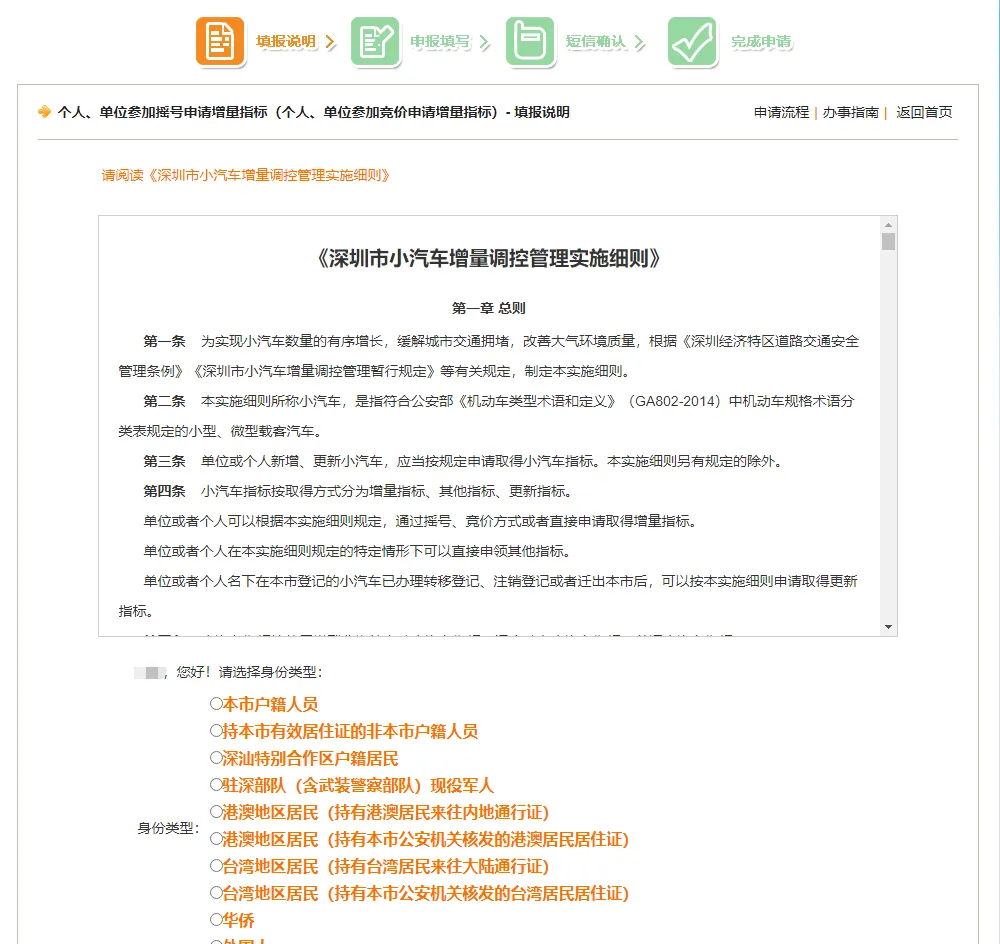 小伙伴们可以在手机端或网页端提出申请,手机端即在“深圳交通”公众号-“微服务”-“小汽车摇号”,网页端的申请流程如下 👇
