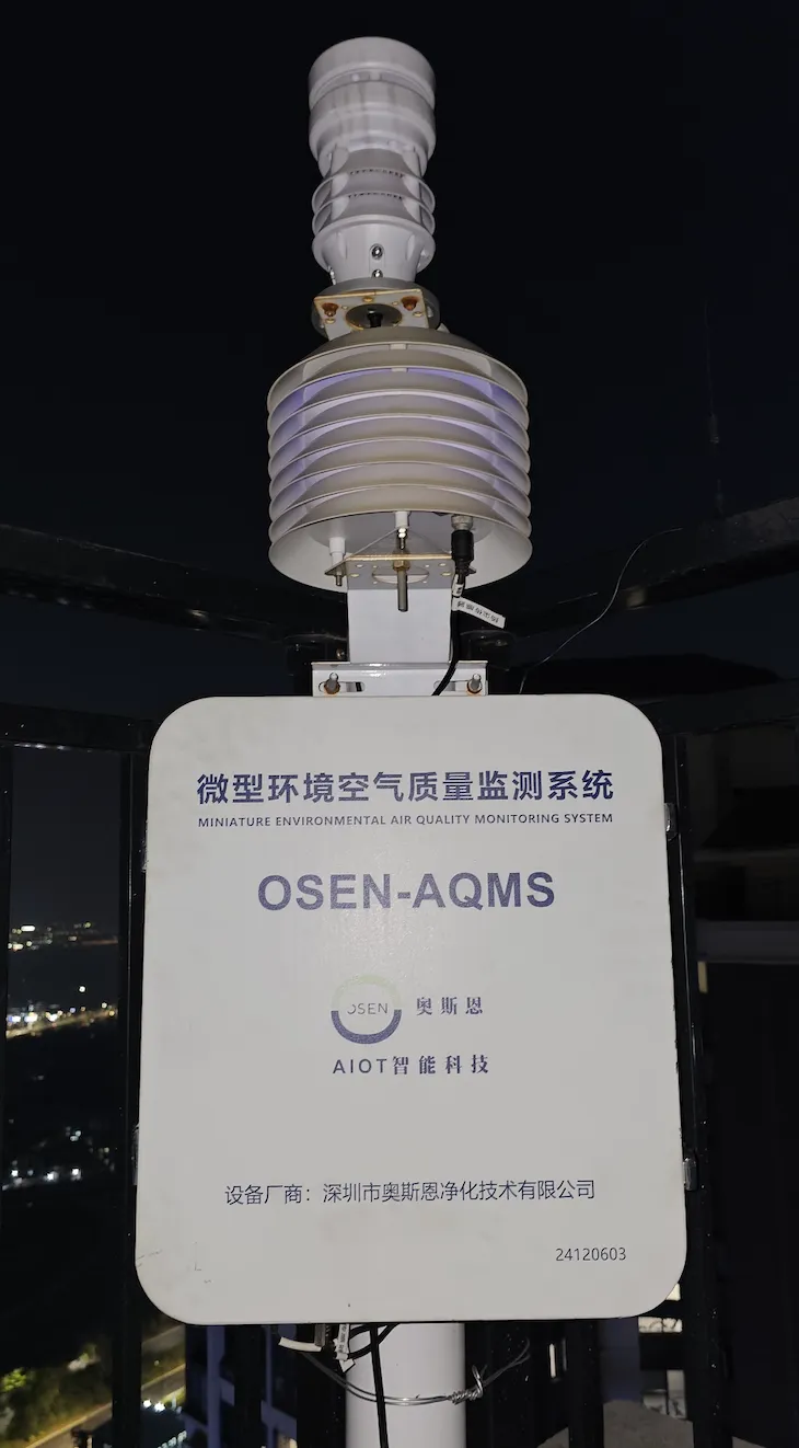 装在小区楼栋顶部的一台空气监测装置。