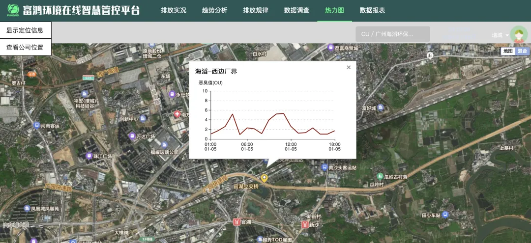 平台显示的1月5日污水处理厂西边厂界恶臭值监测数据。