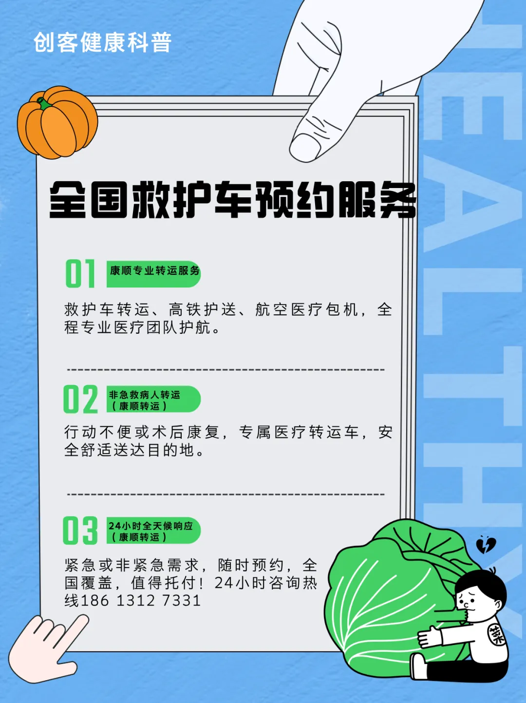 咨询或预约请拨186 1312 7331(微信同号),专业提供非急救医疗转运服务,24小时待命,安全护送每一位患者。