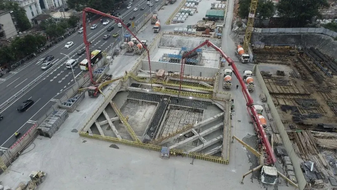作为超深车站,京溪路站的混凝土用量巨大,车站单次最大混凝土浇筑量达2525立方米。