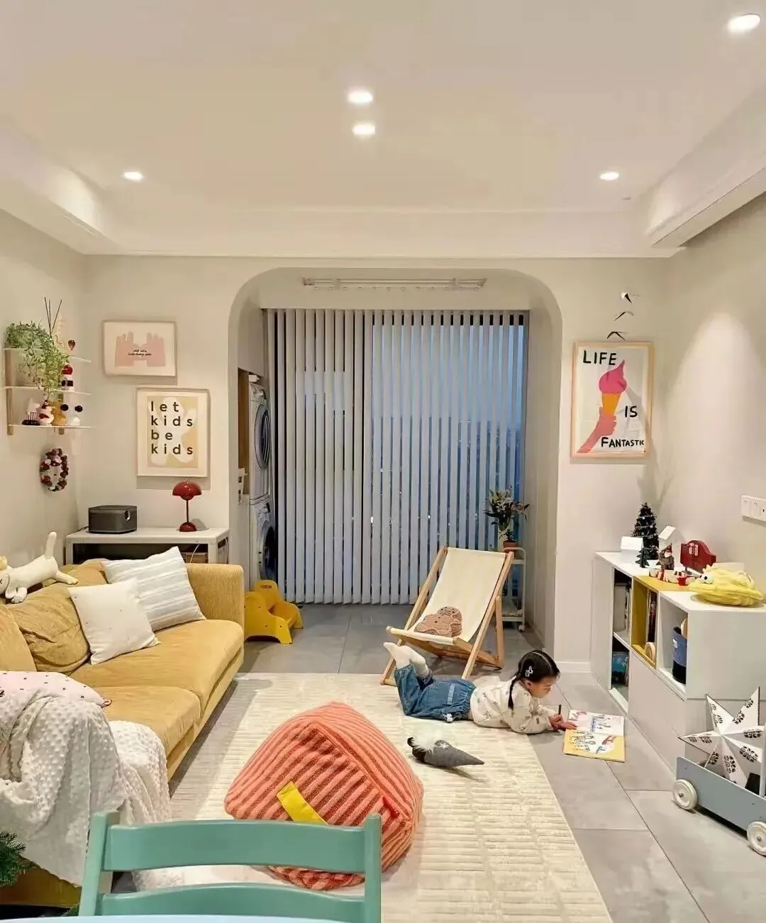 坐地上看书、躺着刷手机、朋友来了围一圈打牌聊天 , 都特别自在。 有小孩的家庭更合适 , 满客厅跑都不怕磕着碰着。