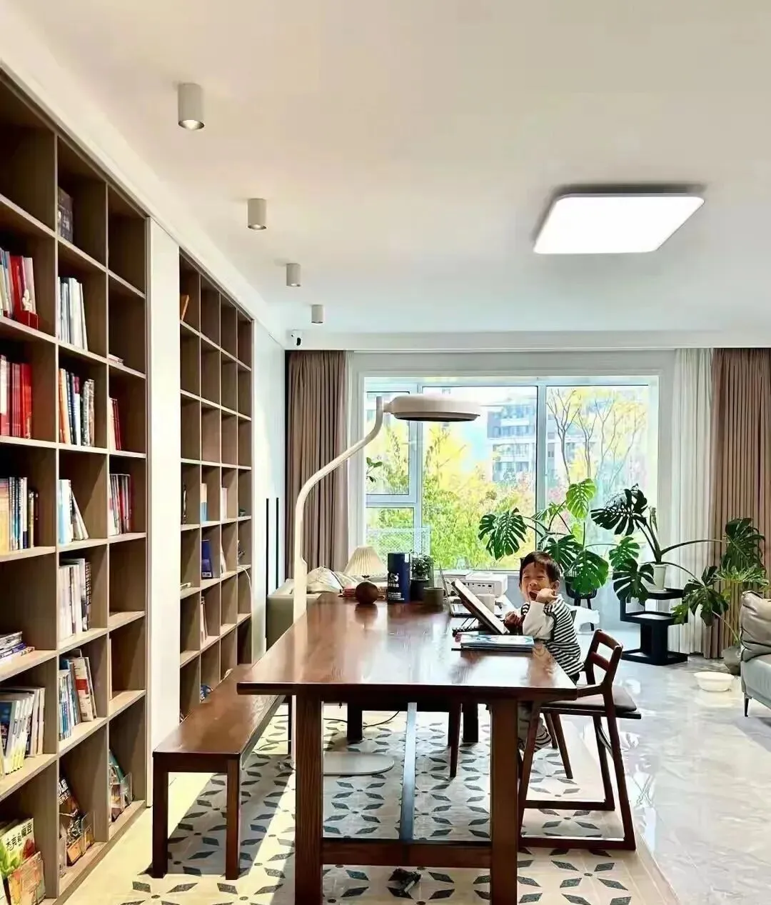 有娃的家庭太适合了 , 孩子放学回来 , 习惯性就坐那儿写作业看书。 大人居家办公也有地方了 , 比窝沙发里刷手机强多了......