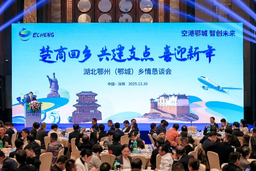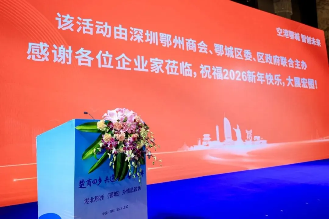 2025年12月30日,“楚商回乡 共建支点 喜迎新年”湖北鄂州(鄂城)乡情恳谈会在深圳举行。活动以乡情为纽带、面向粤港澳大湾区搭建合作交流平台,推动产业精准对接,为鄂城高质量发展注入强劲动能,共谱服务支点建设新篇章。湖北省政府驻深圳办事处,鄂州市、鄂城区相关领导,与深圳市湖北商会、深圳市湖北鄂州商会等近六十余家商协会代表,以及灵玲文旅集团、花湖咖啡、同山里等企业负责人齐聚一堂,共叙乡情、共话发展。