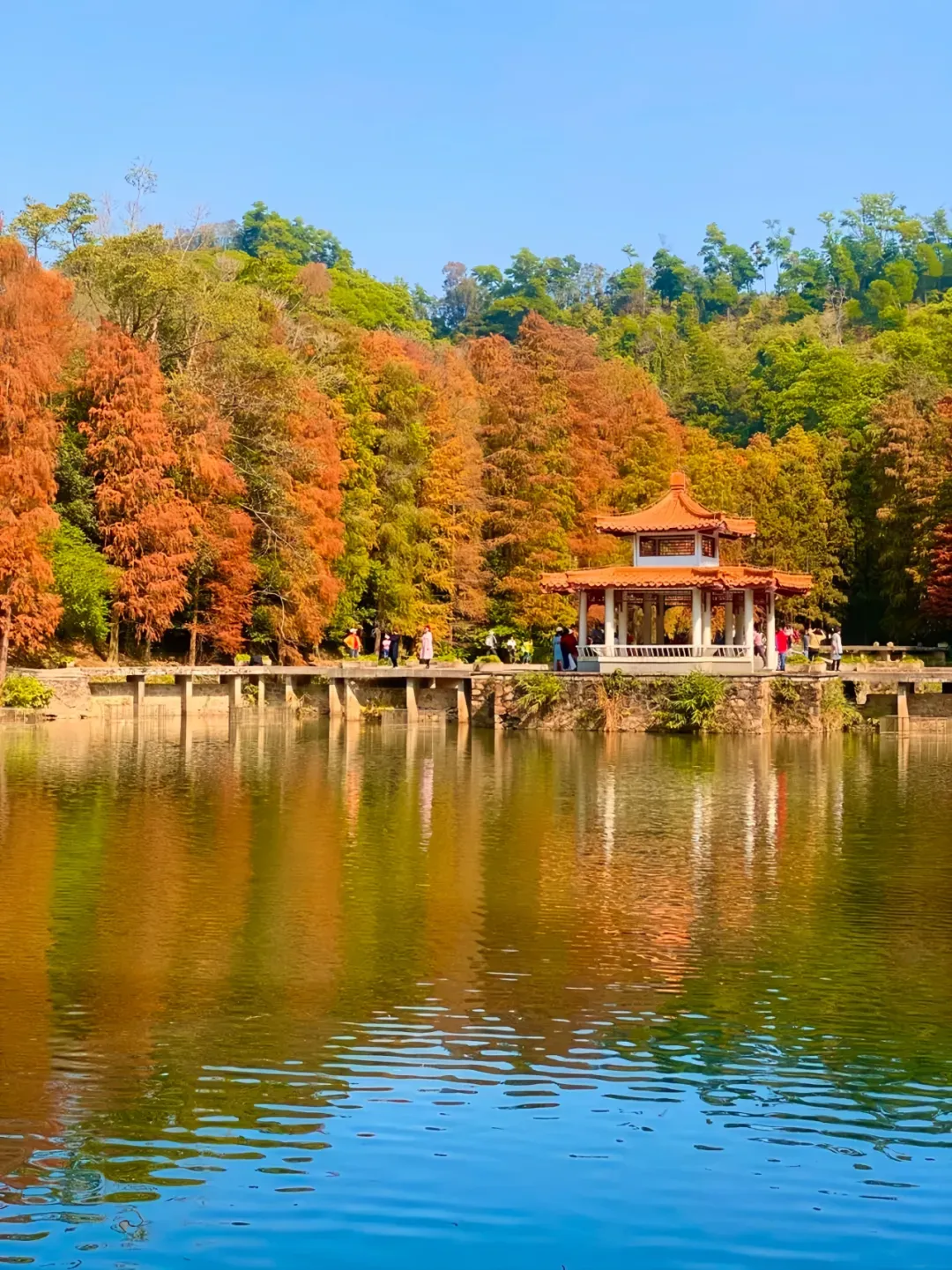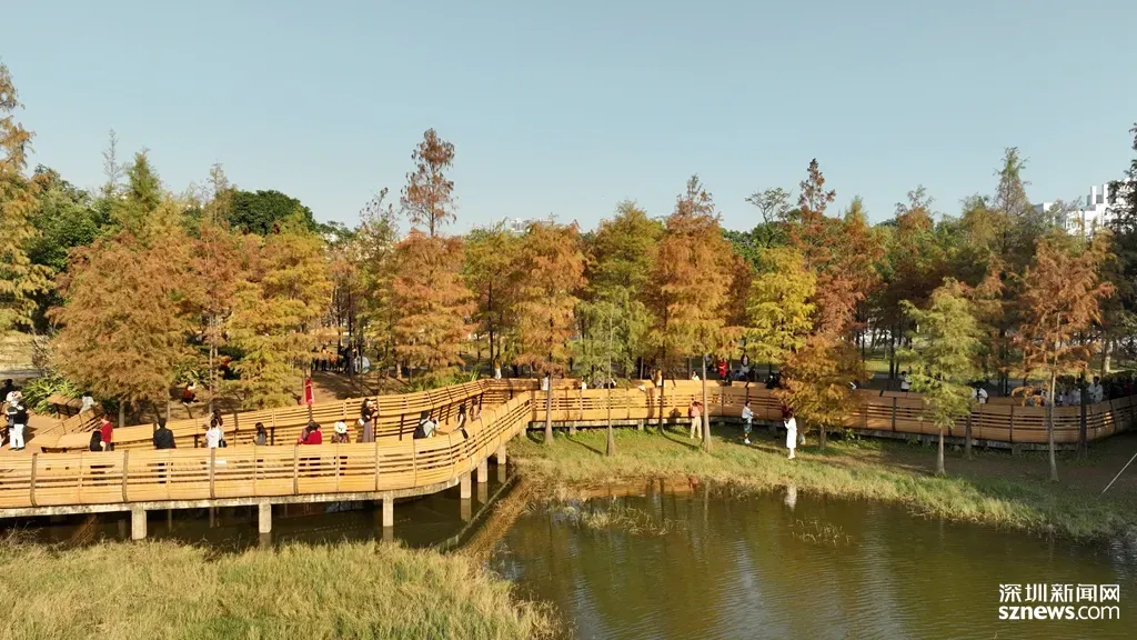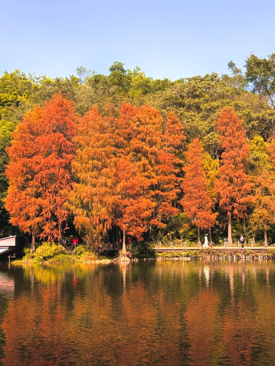 与红绿交织的落羽杉相映成趣