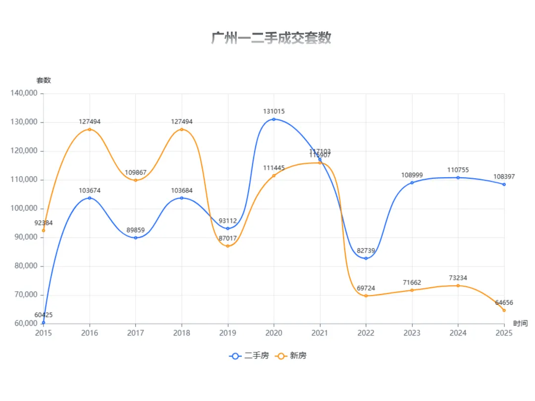 当刚需还在二手房市场捡漏,改善却在新房市场里角逐。新房与二手房的差距,从22年的1.3万套,到24年3.8万套,再到25年的4.4万套的差距,在不断被拉大。