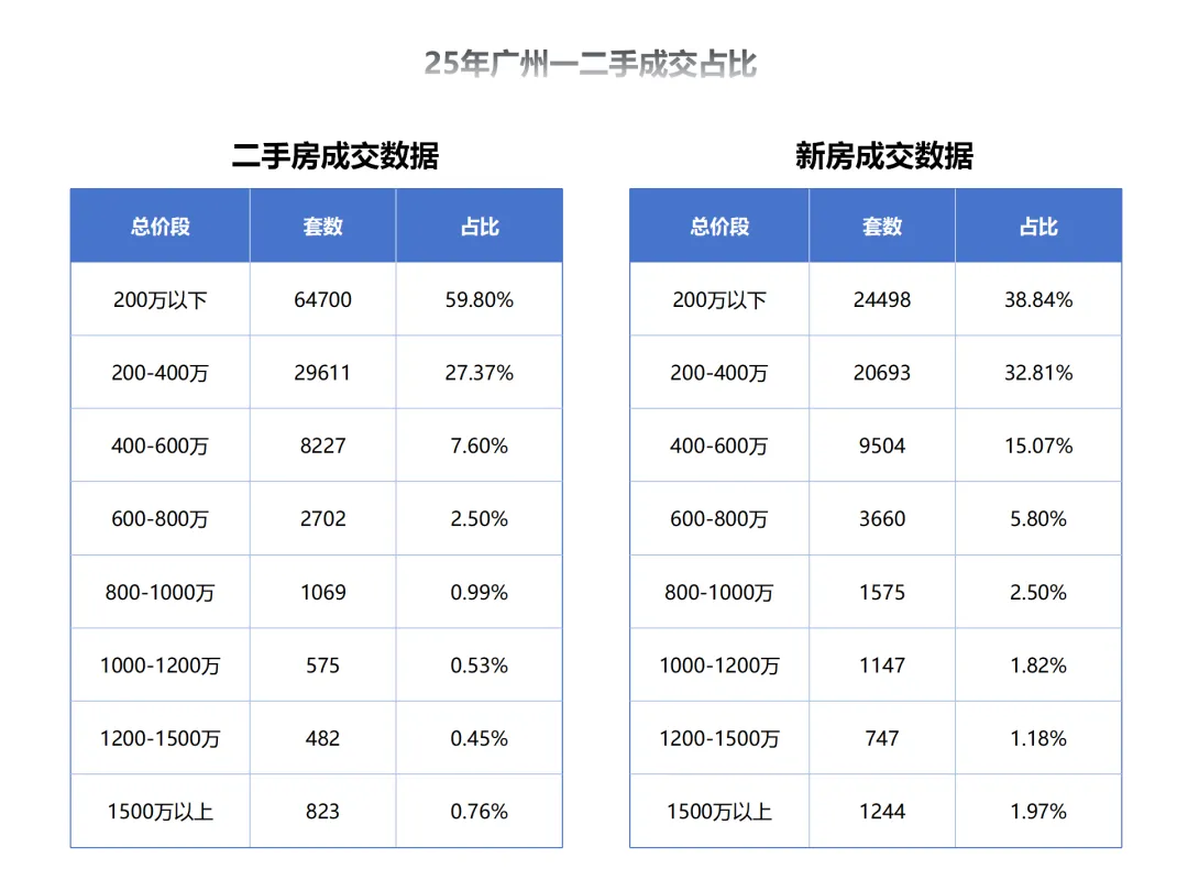但是细分下来,200万以上,二手房的成交量是新房的二倍以上,而且占比高达60%左右,说明刚需更喜欢观望,然后在二手市场捡漏。总价来到400万以上了,新房的成交量就反超二手房了。800万以上,新房是二手房的1.6倍,说明改善客群在纷纷入场。
