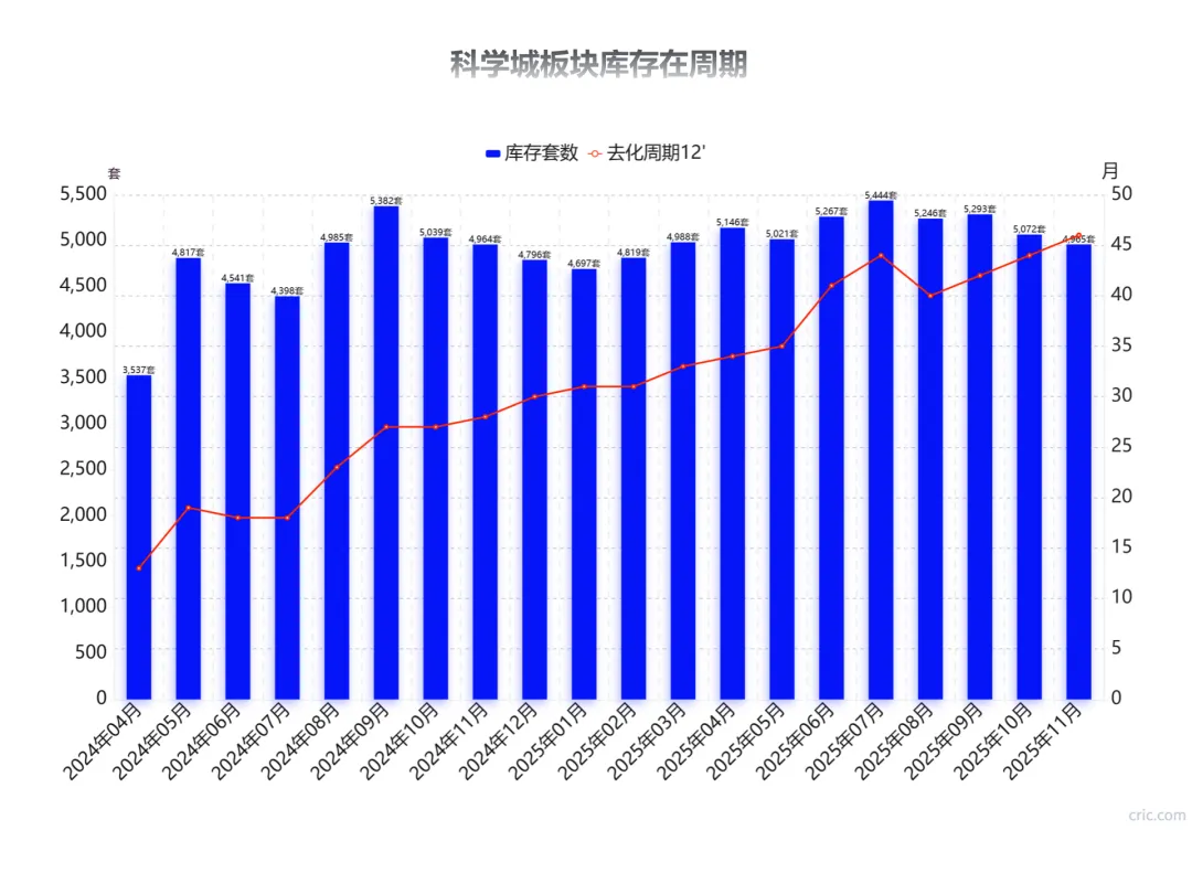 但是也有一些反例,科学城,就算是降价了,库存周期却在被不断拉高,从24年年初的10个月,干到了现在的46个月。