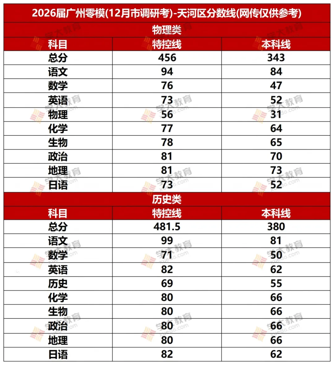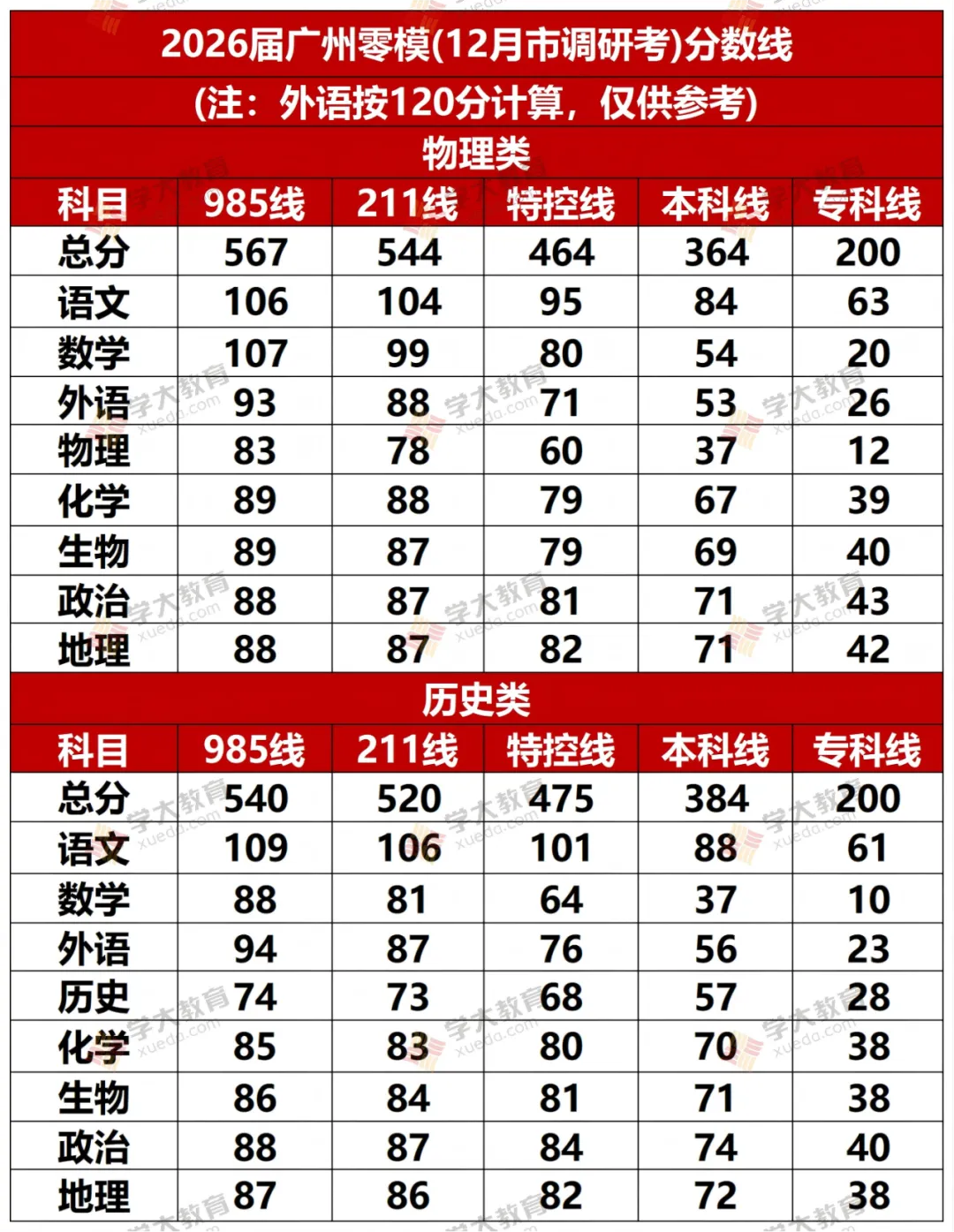 广州零模(12月调研考)又有分数线曝光!