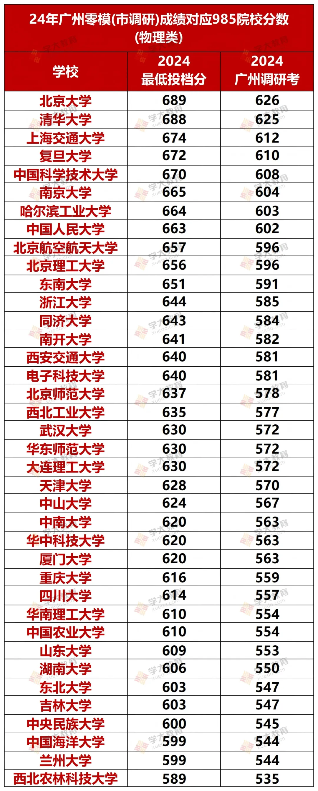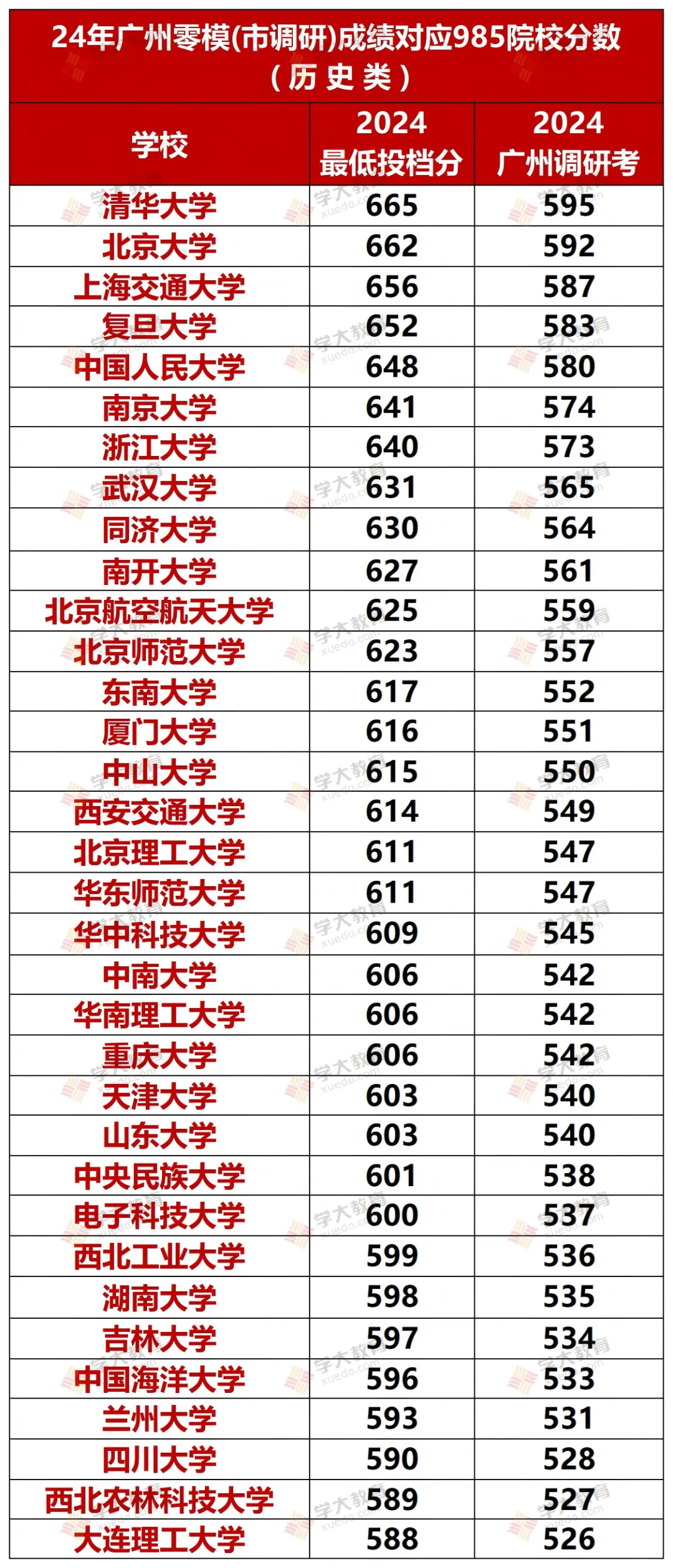 另外,还为大家整理了2024年的广州调研考对应的985高校分数线(物理&历史),供大家参考定位噢!