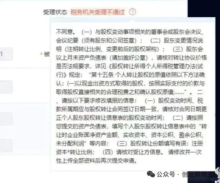 - 税务必备文件:自然人股东股权变更完税情况表(税务局出具)、企业去年年末及近期财务报表(含资产负债表、利润表,需与电子税务系统数据一致)。