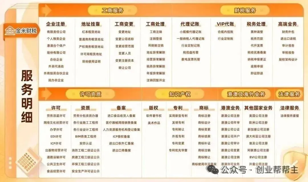 工商注册│工商注销│代理记账│税务合规│财务外包│高端财税│高新认定│知识产权│商标注册│专利申请│法律咨询等服务