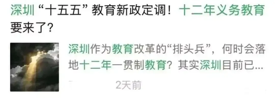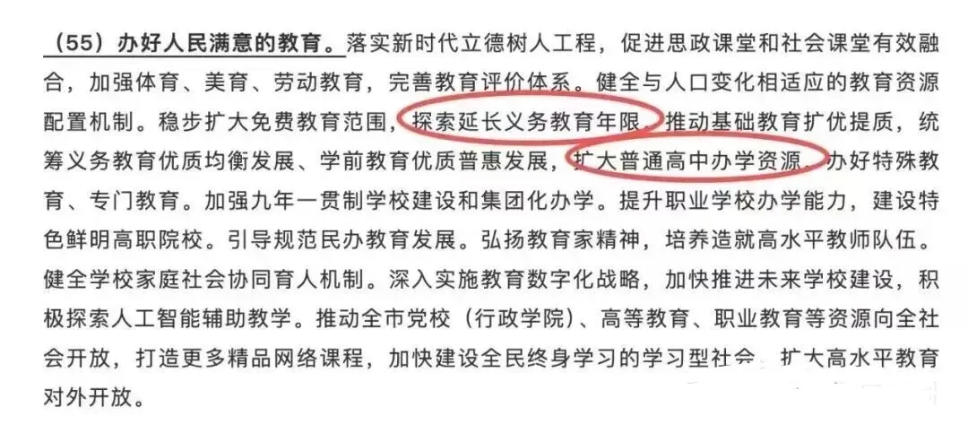 这可能跟深圳《中共深圳市委关于制定深圳市国民经济和社会发展第十五个五年规划的建议》有关。其中第五十五条,就有提到“探索延长义务教育年限”和“扩大普通高中办学资源”: