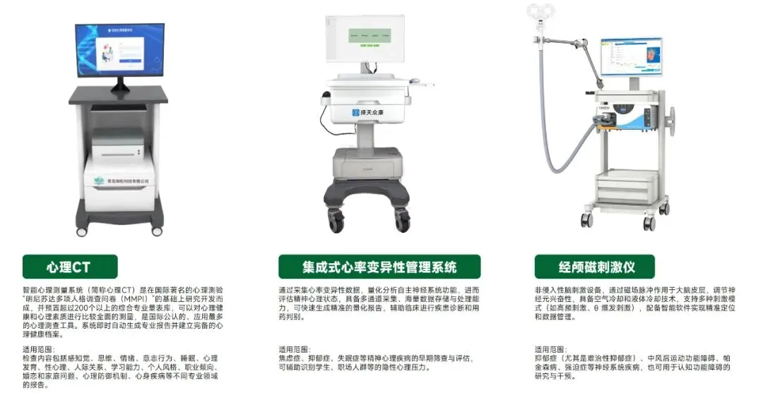 TMS在临床治疗中通常使用重复经颅磁刺激(rTMS)模式,其在精神领域的临床应用主要有:抑郁障碍、焦虑障碍、强迫症、精神分裂症、创伤后应激障碍等。