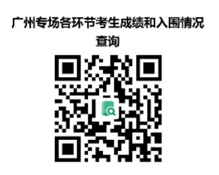 3.笔试成绩。笔试成绩采取百分制,成绩四舍五入后保留2位小数,笔试合格分数线一般为60分,笔试合格人员中从高分到低分按岗位招聘人数5倍比例入围资格复审和面试环节。如招聘岗位考生笔试成绩60分以上人数不足岗位招聘人数5倍的,该岗位笔试合格分数线为55分。岗位笔试合格人员未达5倍比例的全部入围资格复审和面试环节,同分者并列进入。成绩不达笔试合格分数线的不能入围资格复审和面试环节,笔试成绩按40%计算入总成绩。笔试结束次日通过报名系统或“广州专场各环节考生成绩和入围情况查询二维码”(简称二维码)公布笔试成绩及入围资格复审情况。二维码如下图: