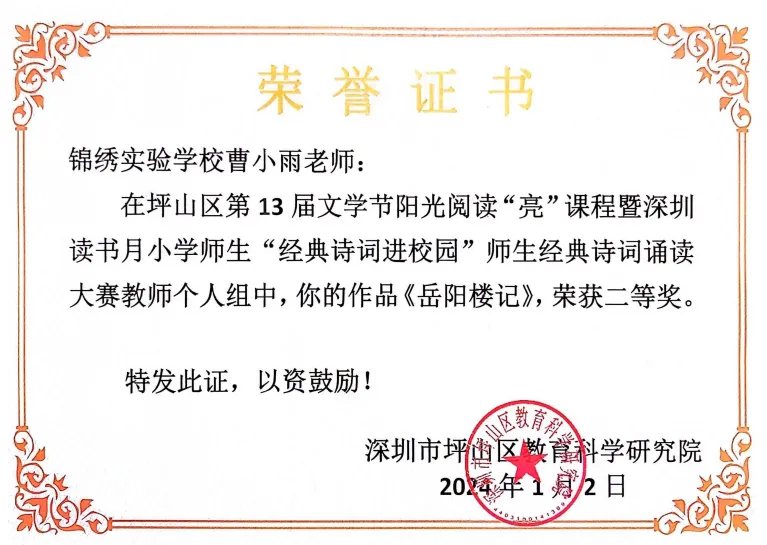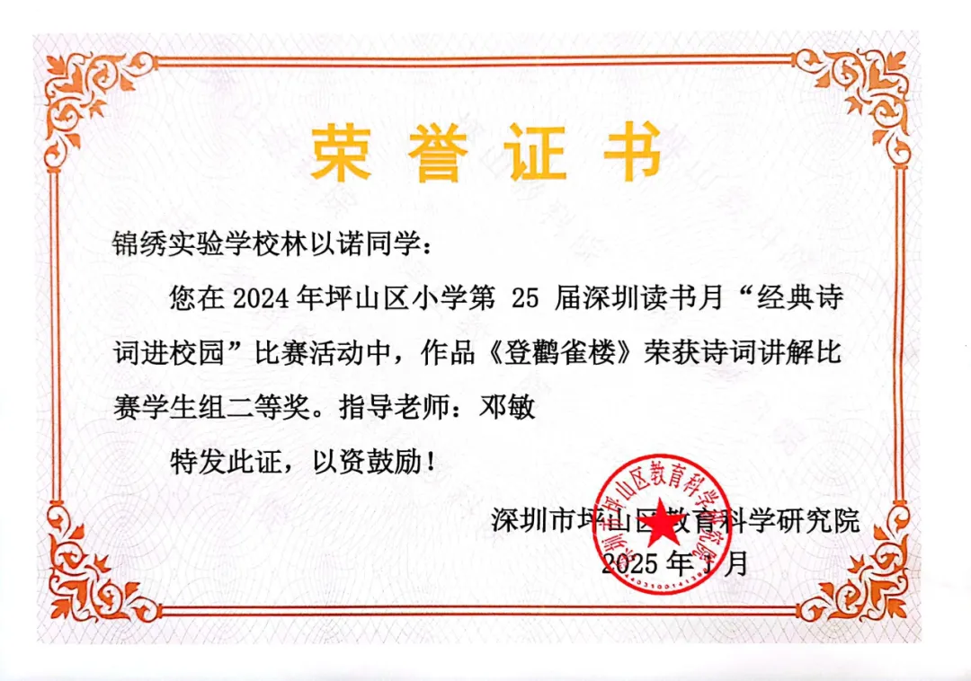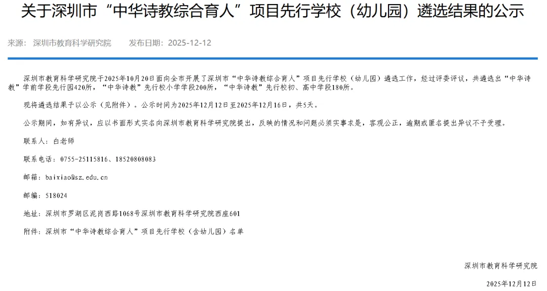 喜报|再传佳音!获评深圳市“中华诗教综合育人”项目先行学校