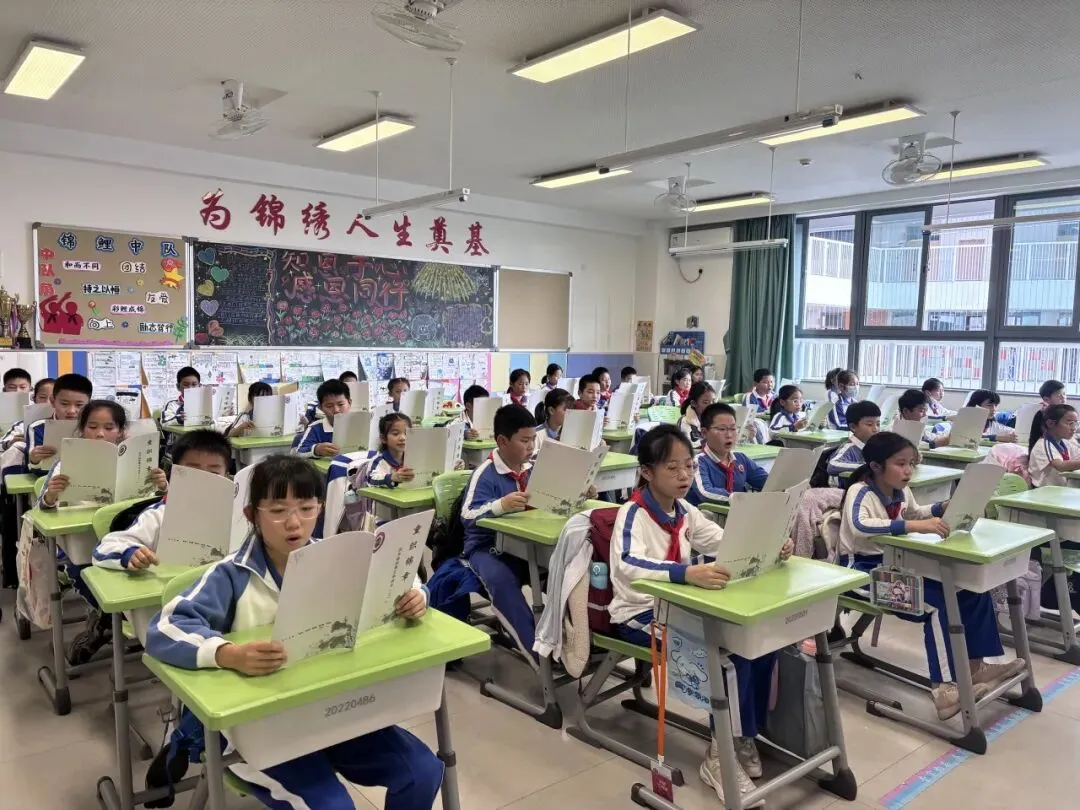 在扎实落实国家课程的基础上,语文科组自主编写《童织锦章》《锦绣读本》等分级诗教读物,围绕“童趣”“山水”“家国”等主题循序渐进,贴合学生认知规律。同时推动诗词与音乐、美术、劳动等学科有机融合,诗配画、诗吟唱、诗劳作成为课堂常态,真正让诗词“活”起来、“动”起来。