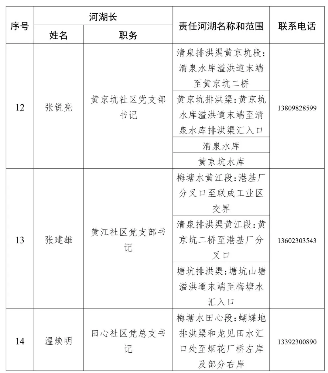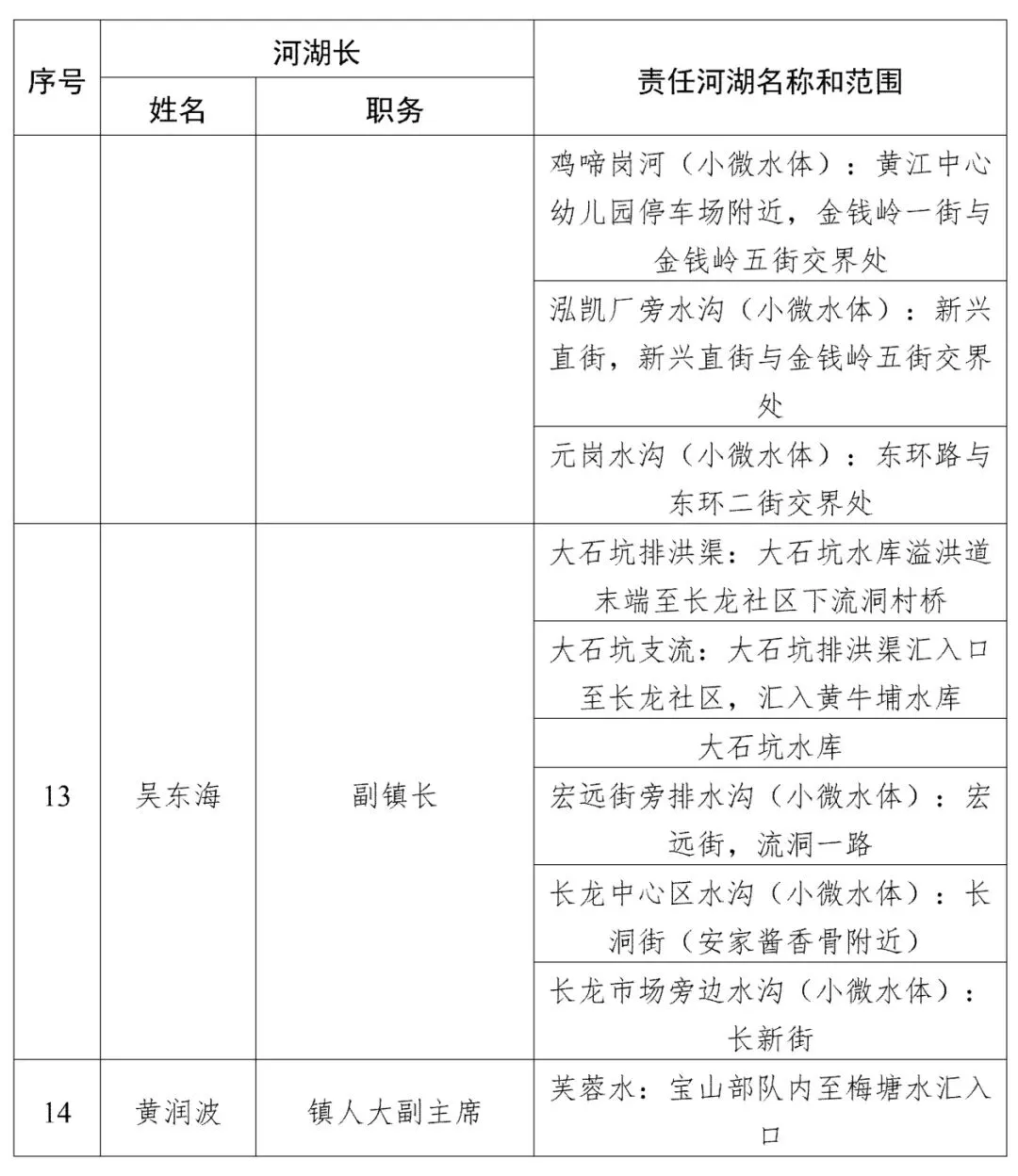 为深入贯彻落实省委省政府和市委市政府关于全面推行河湖长制的决策部署,加强我镇河湖长制工作的组织领导,自觉接受社会监督,现将黄江镇镇、村河湖长名单向社会公告。