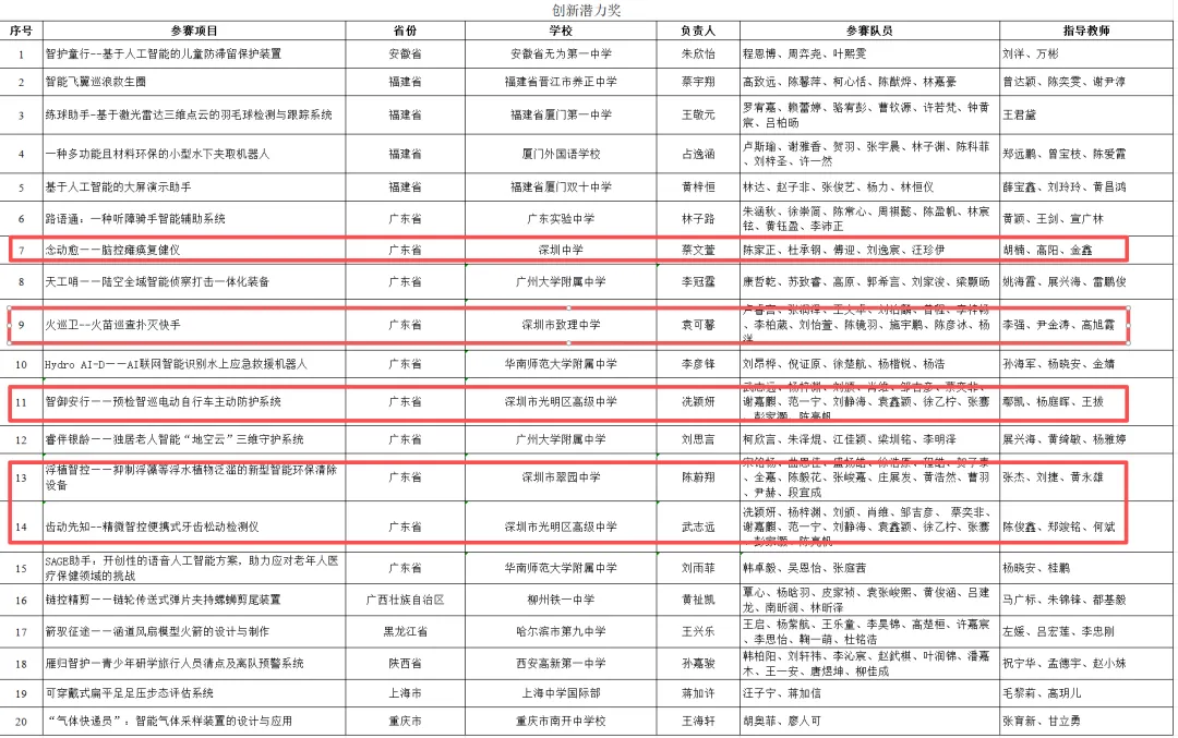 深圳实验学校、深中南山创新学校等培养的学子在各级各类科技赛事中屡获殊荣。
