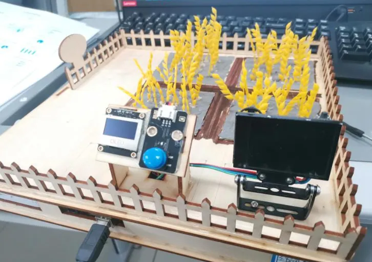 比如学生设计的“智能防近视装置”,该项目源自学生对身边同学视力问题的关注。团队成员表示:“我们用到了语音交互和人脸识别技术,当传感器发现坐姿不对或者用眼时间太长,它就会提醒我们。美术老师还帮我们优化了外观设计,让它更好看。”