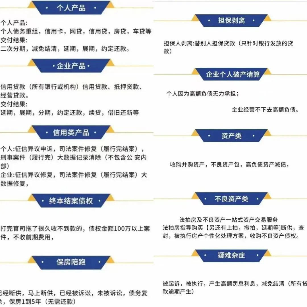 个人/企业融资与债务服务核心:以法律为依据、政策为导向、交付为事实!