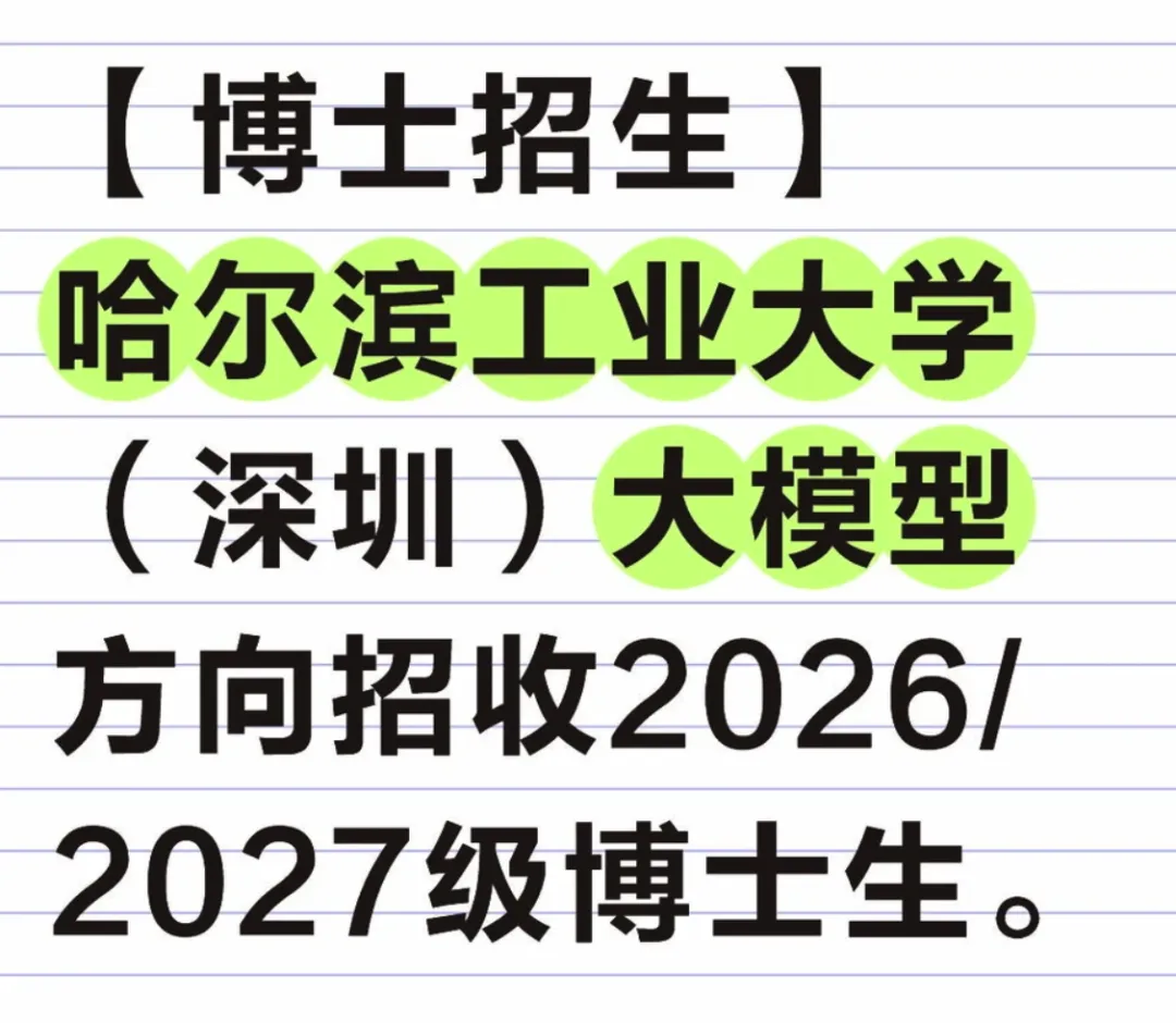 哈尔滨工业大学(深圳)招收2026级/2027级大模型方向博士生