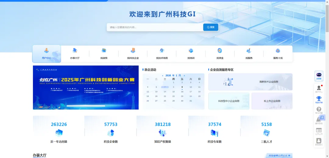 一方面,“广州科技GI”平台已构建覆盖企业全生命周期的服务链条,集成政策匹配、融资对接、知识产权评估等多项功能;