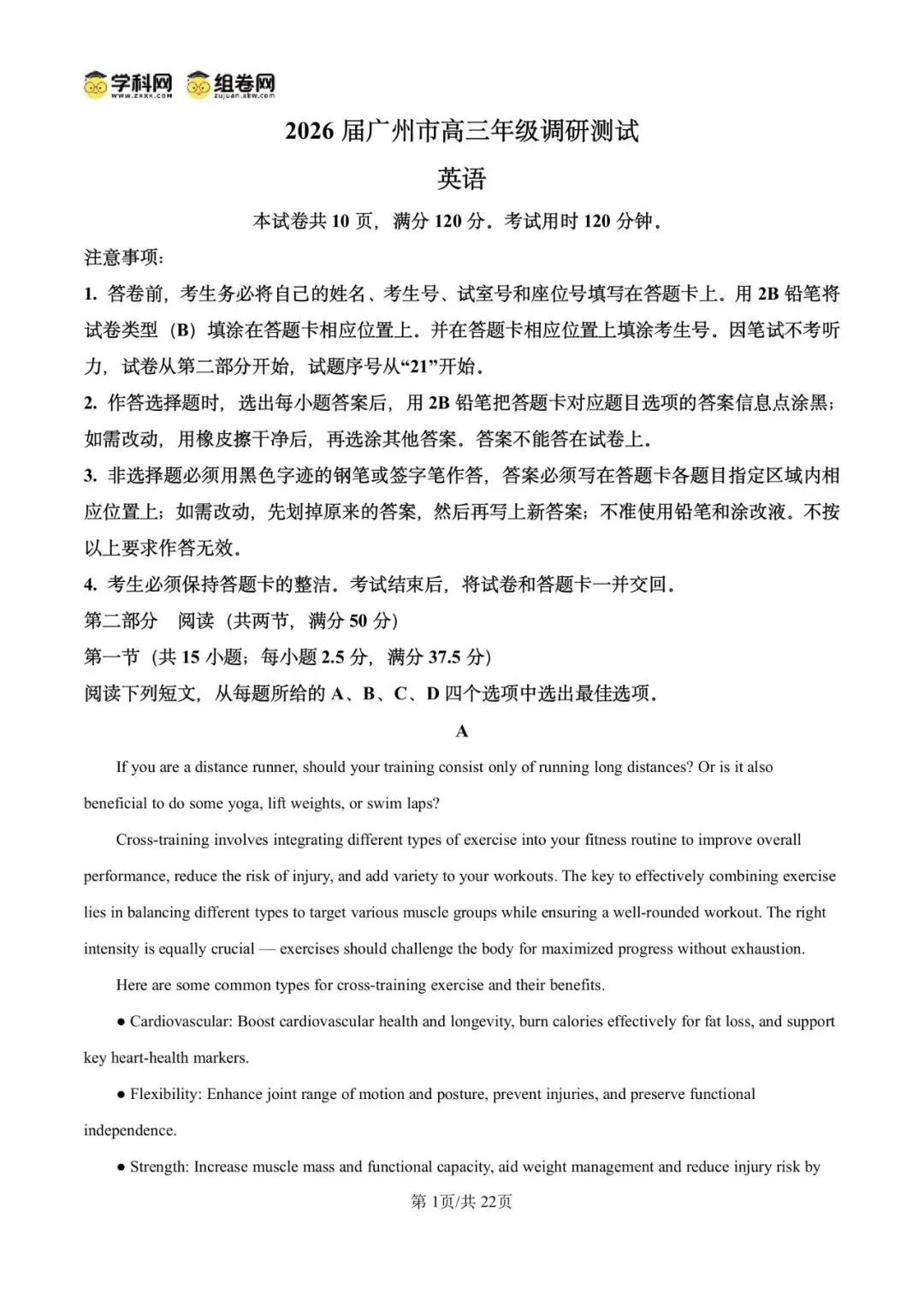 >精品解析:2026届广东省广州市高三年级英语调研考零模英语试卷(解析版)