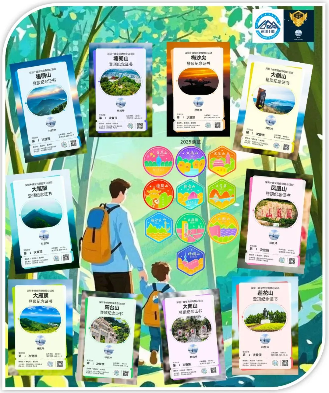 深圳十峰 2025年登顶证书徽章汇总