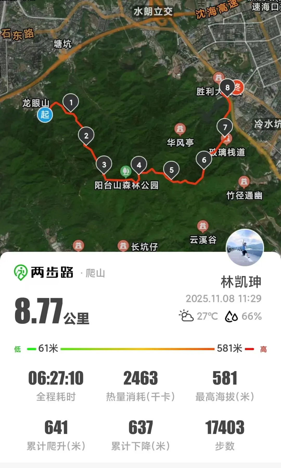 2025年11月08日 星期六 阳台山 8.7km 6h27