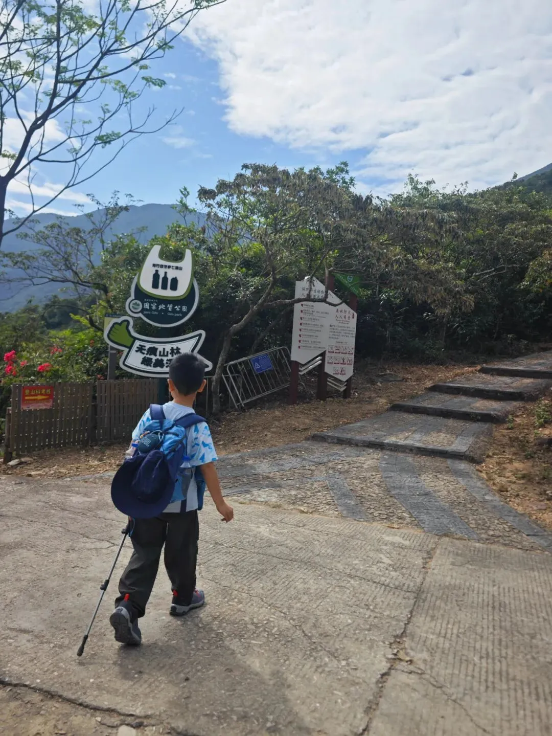 剀剀每次都是兴冲冲跑进登山口,半道开始喊累,登顶喊饿,下山喊腿酸以后不来爬山了,还没回到家就开始问下次是爬哪座山?