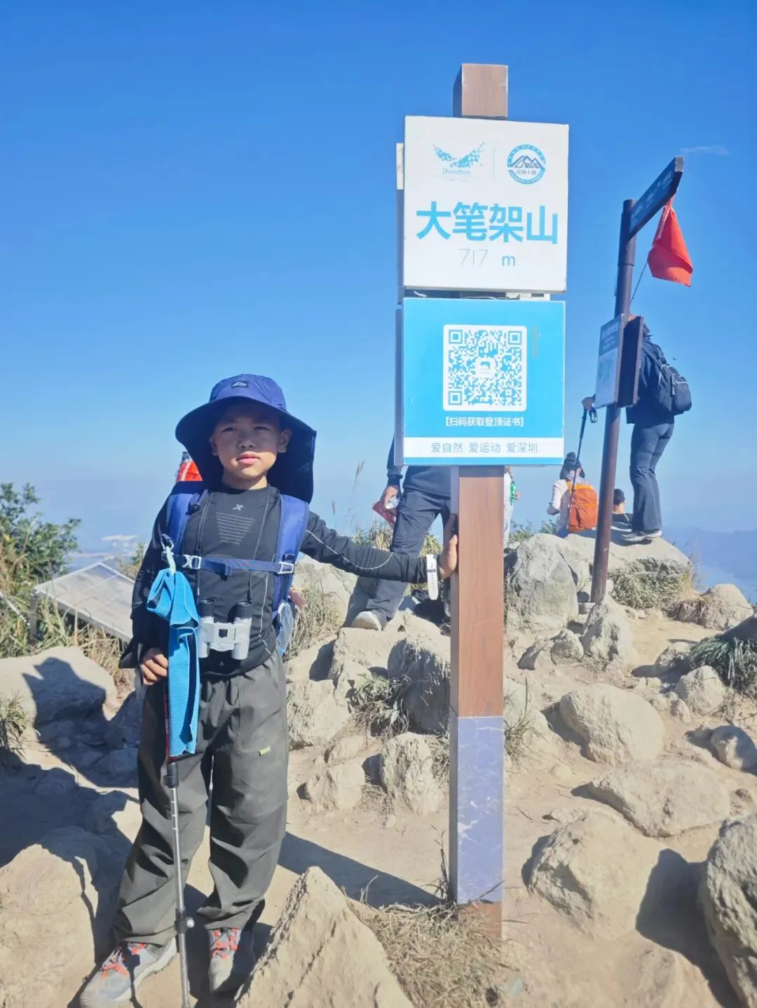 和凯凯的深圳十峰,是分成上下各半年两个阶段(确切说是上下半年各一个月左右)完成的,上半年完成五峰时还是幼儿园的大班宝宝,下半年完成五峰已是一年级的男子汉~~~