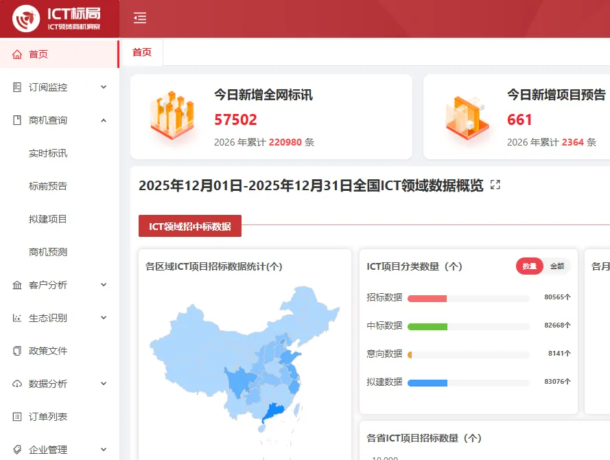 实时更新ICT行业标前预告、商机预测、招/中标信息,