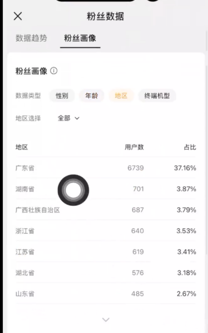 视频号粉丝1.8万,70%以上为女性,年龄集中在30-50岁,约 40%在广东。