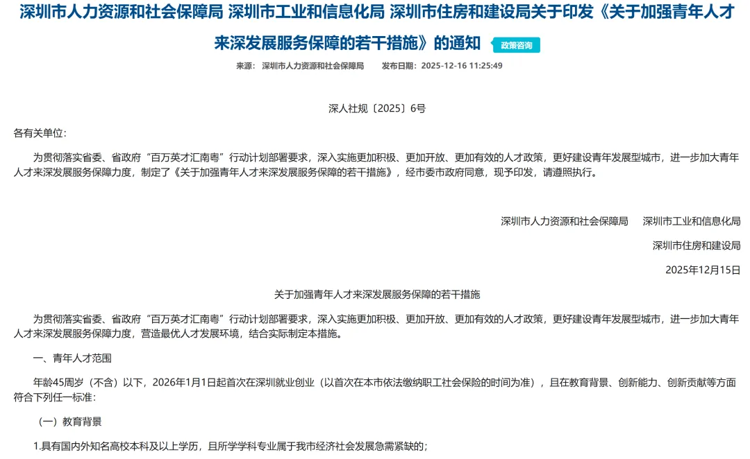 大家好,我是程序员搞钱。之前发了很多申请保租房的文章,有人问:现在已经租好房了,签了一年的合同了,而且离公司也比较近,哪些保租房离公司好远,不适合我。有没有其他的优惠政策适合我这种人呢?没想到的是,这样的政策已经来了,就是《关于加强青年人才来深发展服务保障的若干措施》。旨在吸引和支持青年人才来深发展,通过提供全链条、普惠性、过渡性保障措施,解决青年人才在住房、生活、创业等方面的后顾之忧。- 免费短期住宿:应届高校毕业生可申请最长15天的免费住宿。