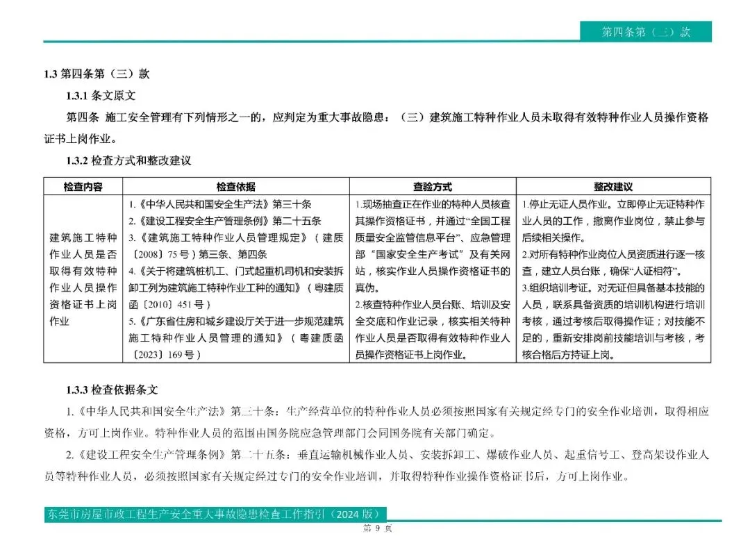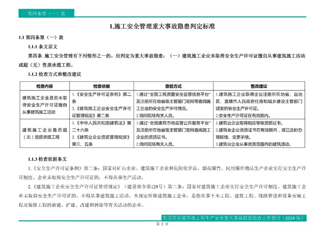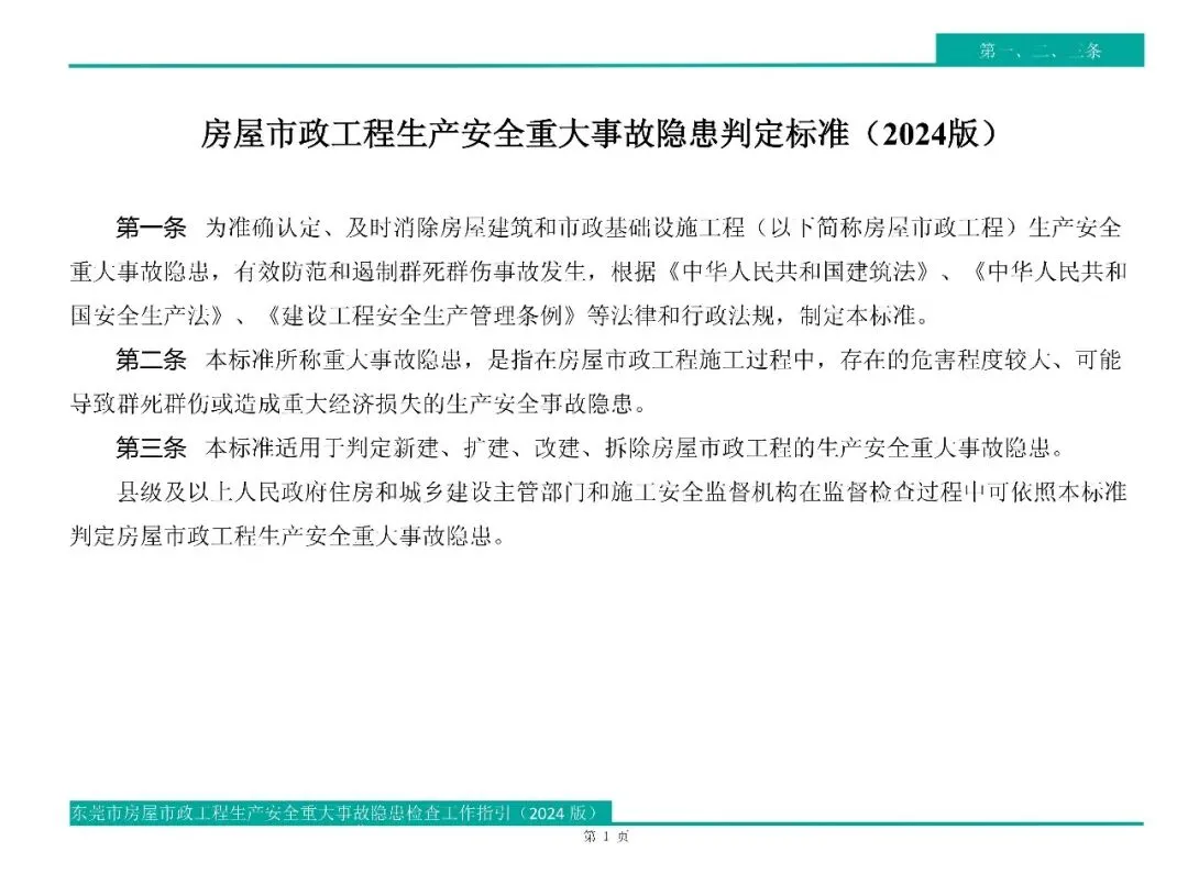 【筑匠】上新啦!——东莞市房屋市政工程生产安全重大事故隐患检查工作指引(2024版)