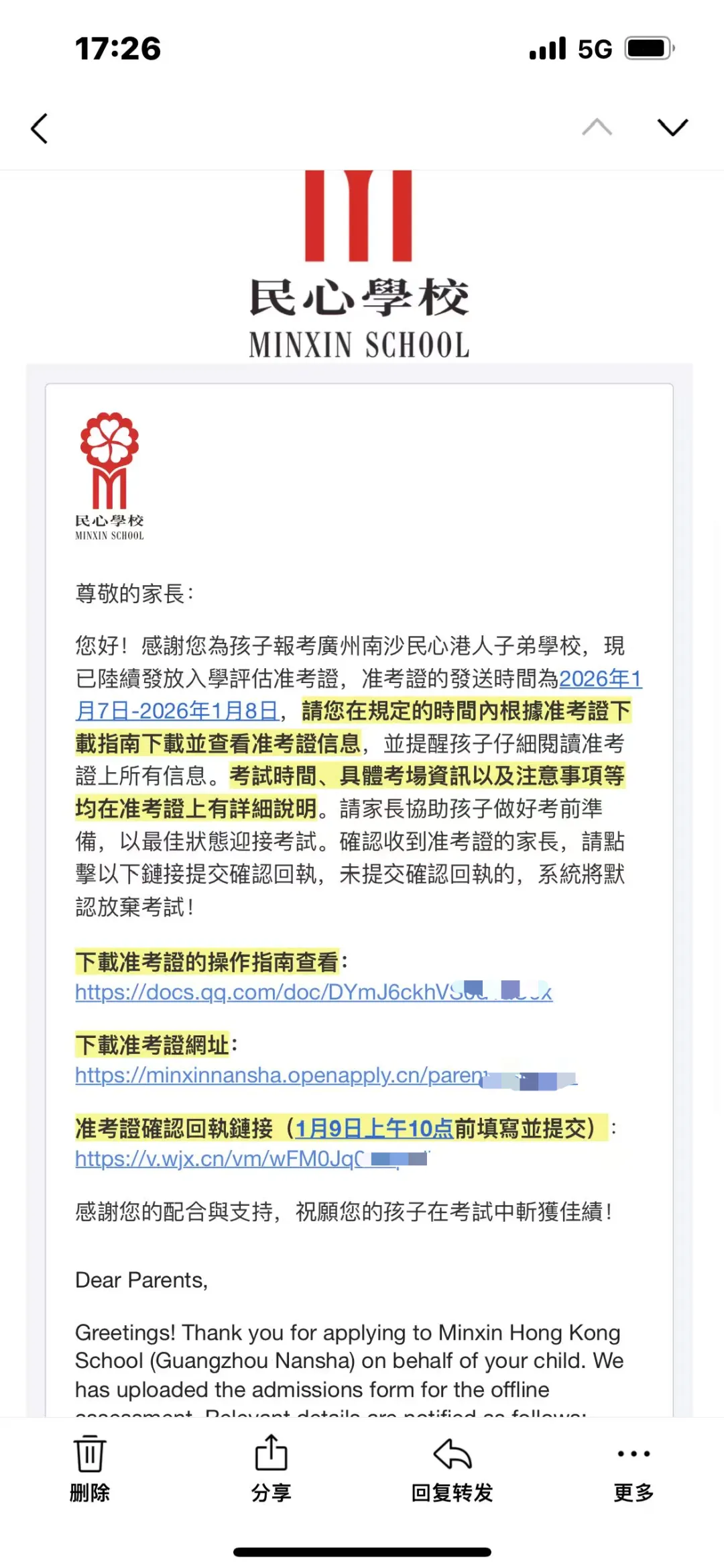昨天下午收到民心学校通知,将会发送邮件通知考试和发放准考证!下載准考證的操作指南查看:https://docs.qq.com/doc/DYmJ6ckhVS0d1aU9x