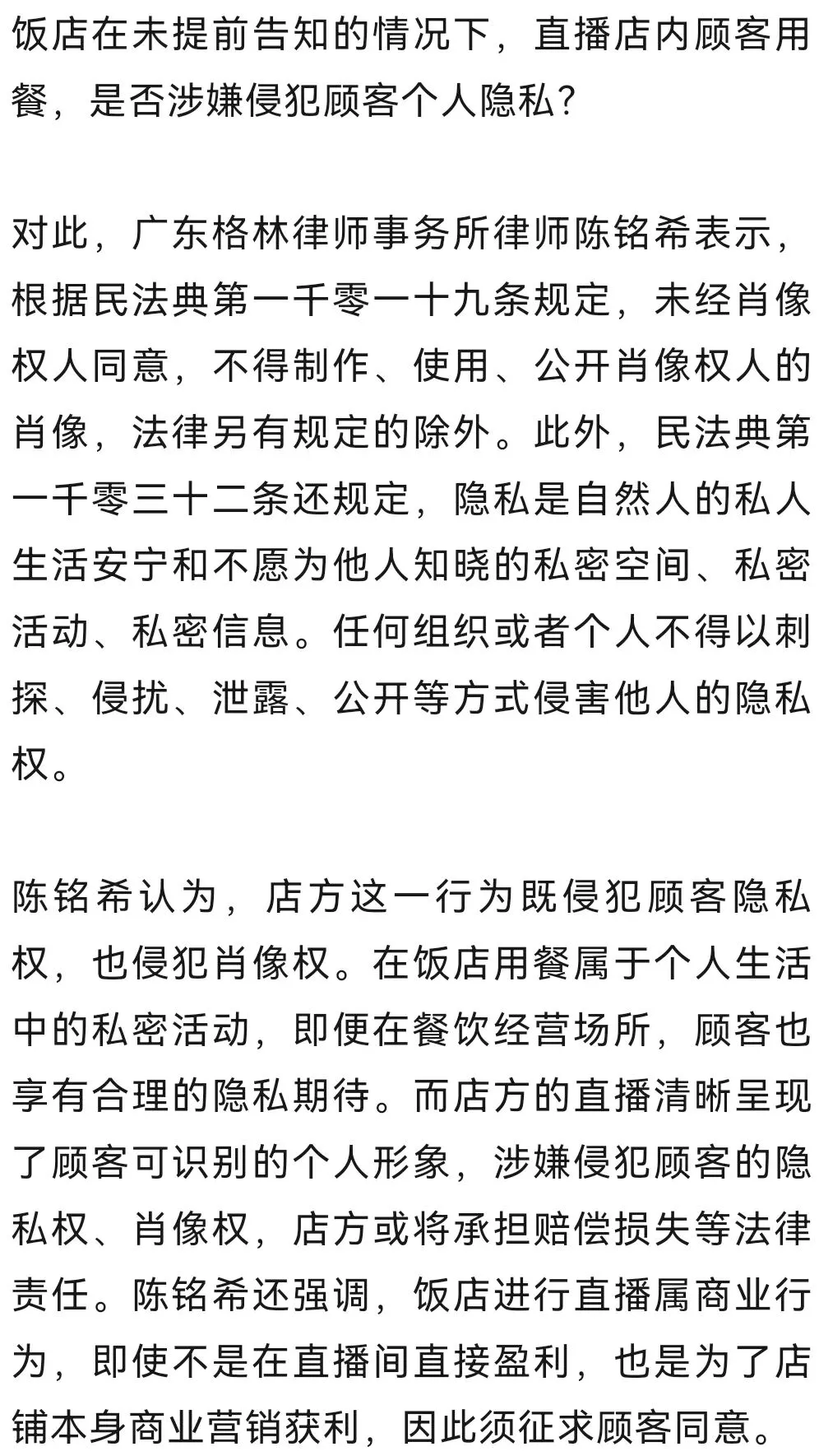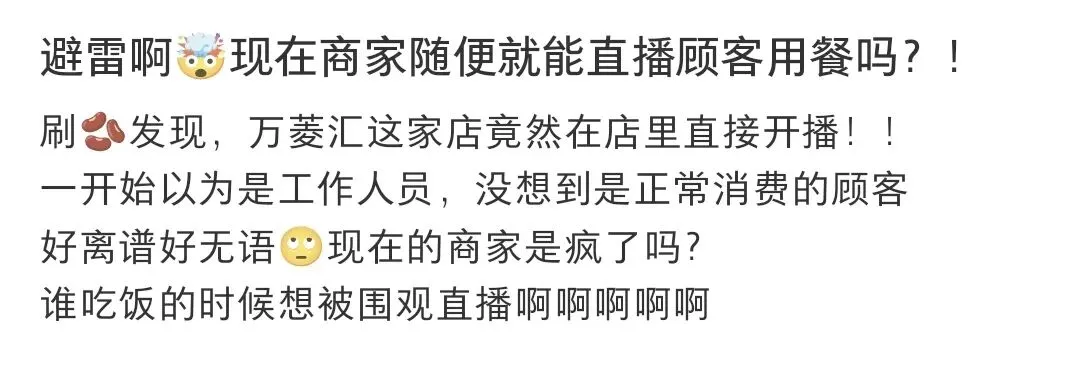 此事引发广泛关注,有网友表示自己曾去该饭店吃饭但并没有工作人员告知正在直播。也有网友调侃:为什么不直播后厨?