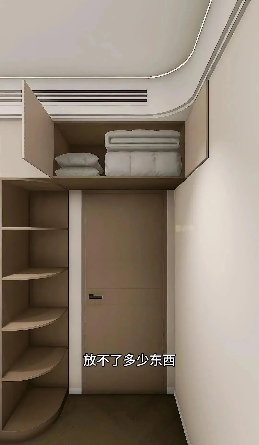 @朋友老张当初非要全屋都做吊柜,后来后悔了:“放不下什么,进门还撞头,搬家都不敢出租了。”- 储物少得可怜,连一床被子都塞不下
