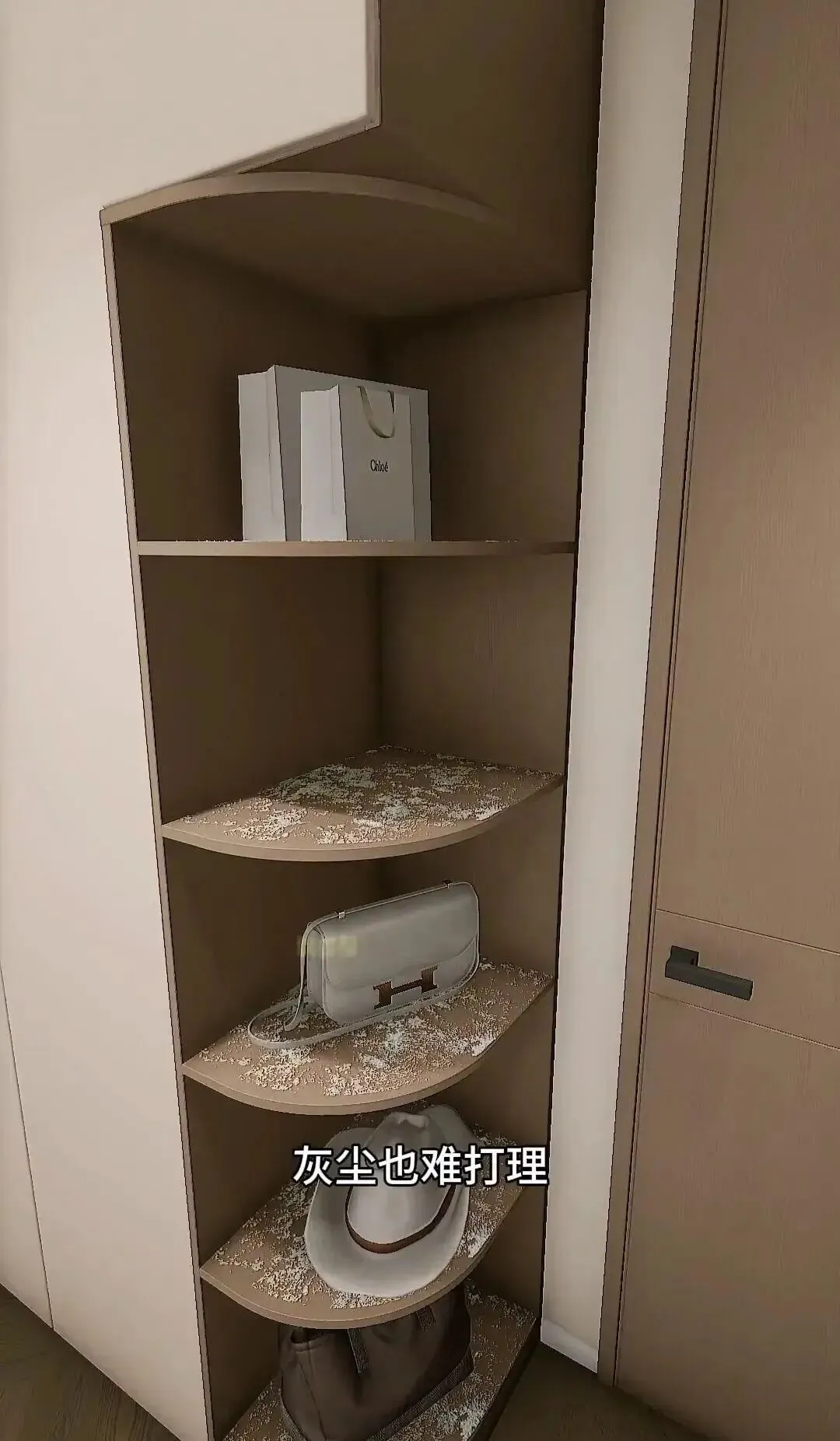 谁设计谁审美犯罪,说是展示格,用三天立马变“杂物坟”。你以为能放香薰和书?结果堆了一堆快递袋、旧耳机、还有不知道哪年结婚送的红手帕。@网友@玲玲吐槽:“天天擦灰,最后用一块布直接盖上,眼不见心不烦。”- 不藏东西还显乱,一眼过去全是烦躁