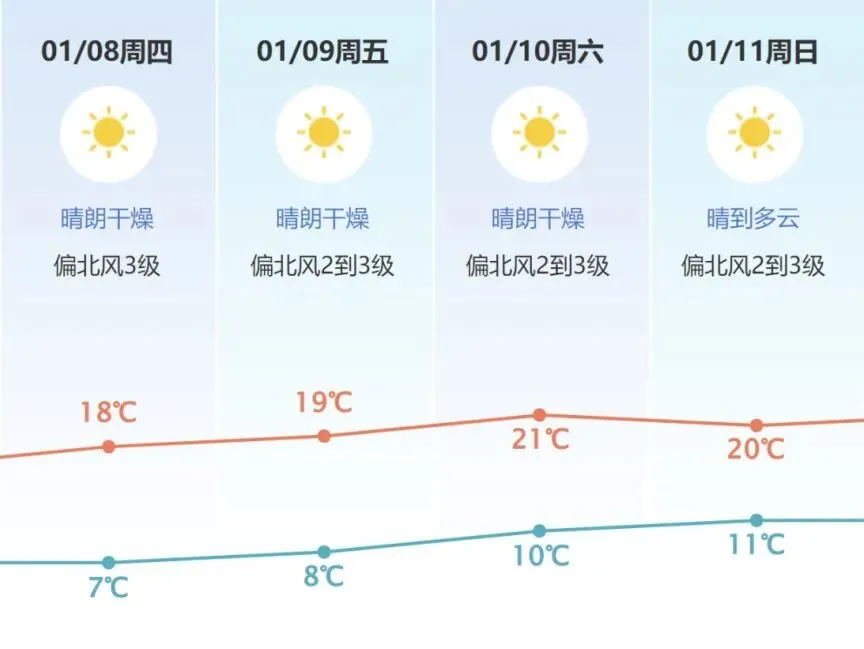 1月7日至周末,将有两股冷空气接连来袭,但强度不强,影响区域偏北,中东部回暖的天气趋势总体仍不会改变。