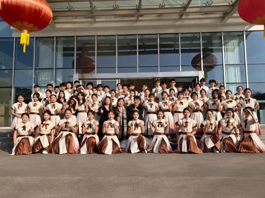 随后,合唱团随即转换艺术风格,为观众带来深沉隽永的中国艺术合唱作品《舟中晓望》。该作品取材自唐代诗人孟浩然的诗篇,经现代作曲技法改编而成。合唱团以细腻入微的音色调控与情感拿捏,将诗词中 “山水画境” 的静谧与 “泛舟抒怀” 的豪情演绎得淋漓尽致。