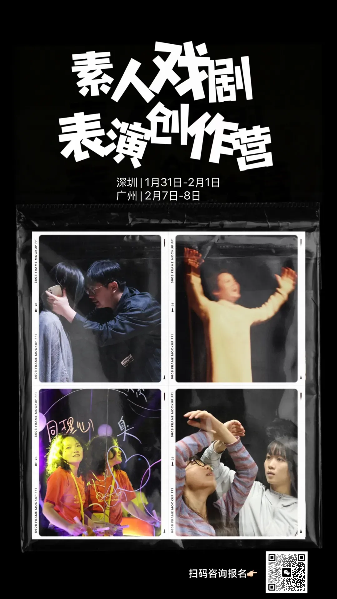 *本活动为戏剧疗愈活动,旨在探索与表达,非心理咨询和治疗。*物件剧场与偶剧虽有交叉,但是本次创作营的重点不在练习操偶。因此将特别安排线上的物件偶操偶入门课,本次编创营参与者可免费学习!你好呀,我是水草,是本次活动的带领者,下面的小字部分是我的官方介绍。我是一个导演、演员,也是一名艺术疗愈推广者。我曾跟随国内外多位老师学习过戏剧疗愈、戏剧治疗、戏剧教育。物件是我认为在相关工作中很好的一个很好的方式带出大家的故事。在过去的三年我一直跟随国内外多位优秀的偶戏老师(Cariad、Sean、Mark、触感实验室等)进行学习,物件戏剧和偶剧有许多交叉部分,在本次工作坊也会和大家分享偶剧的技术方法。我曾经用了半年多时间参与项飙、何志森等发起的“看见最初500米”的工作坊,我们许多同学的探索与创作,也都围绕着物件。项飙老师和何志森老师一直在引导我们,如何通过物件回归到人本身。最终我的物件剧场作品《但是》参展了深港城市双年展。此外,我也曾经学习了很多肢体创作方法, 我参与了李泽林的材料物件剧场工作坊,也参与了凌云焰肢体游击队的特定场域表演研修班。本次线下创作中我们会将物件结合肢体与空间,却别于线上的侧重点:影像与灯光。这些创作方法,我都将会在这一次的创作营中和大家分享。希望你能在这里尽情体验创作的乐趣!水草(沈濛):演员、导演、戏剧导师。生长剧场主理人。带领戏剧工作坊经验上百场,演出经验上百场。曾于厦门嘉庚剧院、广州云幕剧场、广州行剧院等剧院带领戏剧工作坊。于广州大学、香港中文大学、福建师范大学等院校开展相关讲座及工作坊。导演戏剧作品《感冒》、《快乐存在?》、《安提戈涅之问》《前方到站是》等。曾参与麓湖环境戏剧周、“万花瞳”厦门青年戏剧竞演、亚洲读剧节等。曾参展深港城市双年展。主演、主创影视作品参选国内外多个电影节。扫码或搜索微信号:MomomonicaFighting*活动仅公开招募6-8人,人满则止。报名占位以缴费为准。*因活动时效特殊性,报名后因个人原因无法参与恕不退款,可转让名额。*如不满起开人数或因不可抗拒因素活动取消,将全额退款。