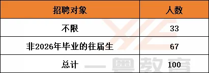 招聘对象面向往届生的有67人,不限对象的即应届生和往届生都可以报的岗位有33人,整体本次公告往届生所有岗位都可以报考,因此这个公告更倾向和关照往届生群体,所以往届生社会人士要把握好这次的机会