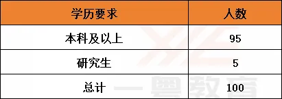 从学历要求来看,95%的岗位本科即可报名,要求研究生即以上的仅有5人,占比5%。所以整体门槛还是比较低的