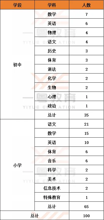 从招聘的学段来看,100人的岗位中,小学招聘65人,初中招聘35人,主要还是小学为主