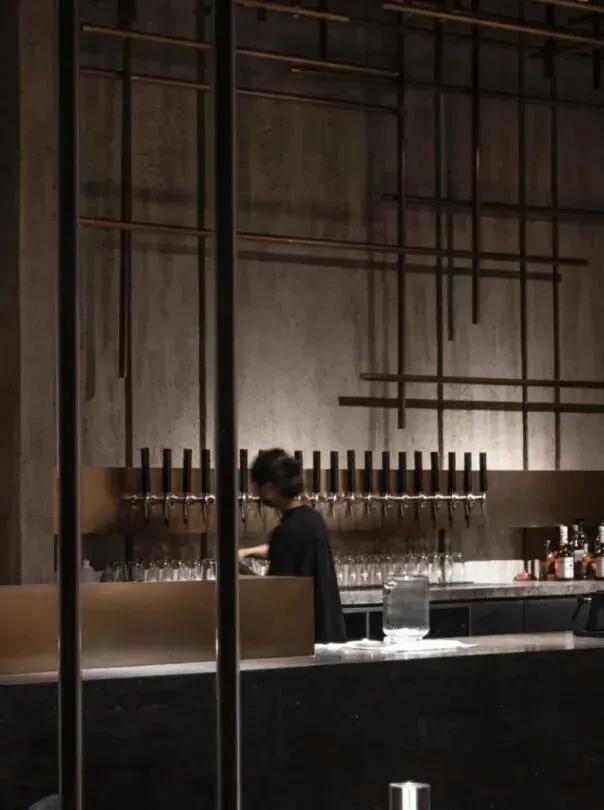 工业风与复古元素结合,20米超长酒柜自助选酒