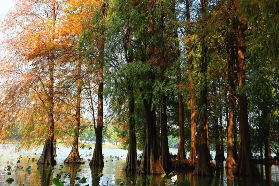 最近,罗湖的落羽杉都红啦!走进洪湖公园,仿佛踏入了一个天然的调色盘。